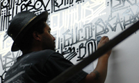 This is a video featuring the LA graffiti artist, Retna painting at RVCA.