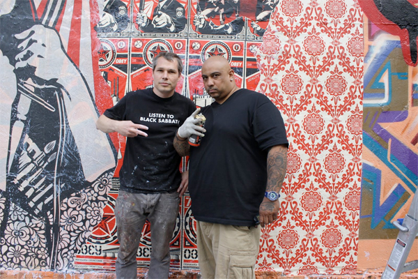 The street artist Shepard Fairey teamed up with the graffiti writer Cope2 to paint this wall in the Bronx. Check out more of photos on Cope2’s blog.