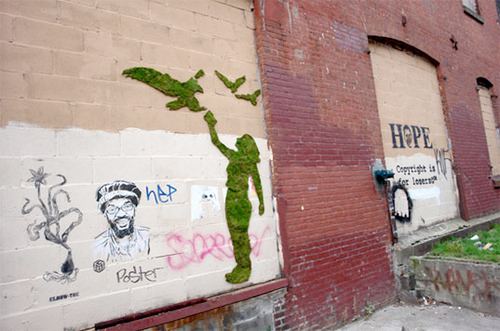 Here’s an interesting way to create a green alternative for graffiti and street art, use moss. Find out how to make your own moss graffiti here.