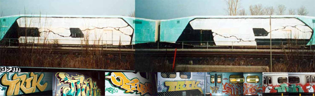 Here’s a photo put together by Escape From The Wreck that features old Trik graffiti on Toronto subway trains and GO Trains.